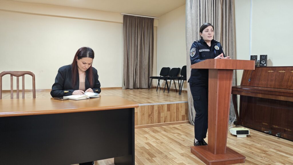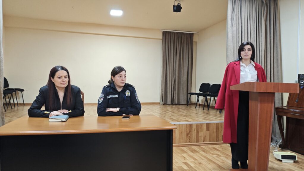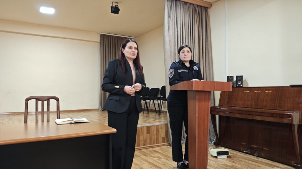 Կապիտան Ռիտա Մանասերյանը ներկայացրեք դեռահասների շրջանում թմրանյութերի տարածվածությանը, ինչպես հասկանալ, որ դեռահասը խնդիրներ ունի։ Ներկայացրեց պայքարը դրանց դեմ։ Խնդրեց դասարանի ծնողներին զգուշացնել՝ լինել ուշադիր երեխաների նկատմամբ՝ հատկապես, երբ դեռահասի մոտ ի հայտ են գալիս թանկարժեք իրեր, մեծ գումարներ, երբ երեխան սկսում է ուշ տուն վերադառնալ, դառնում է ցրված ու ձեռքերը հարկի ու անհարկի տանում է գրպանը։